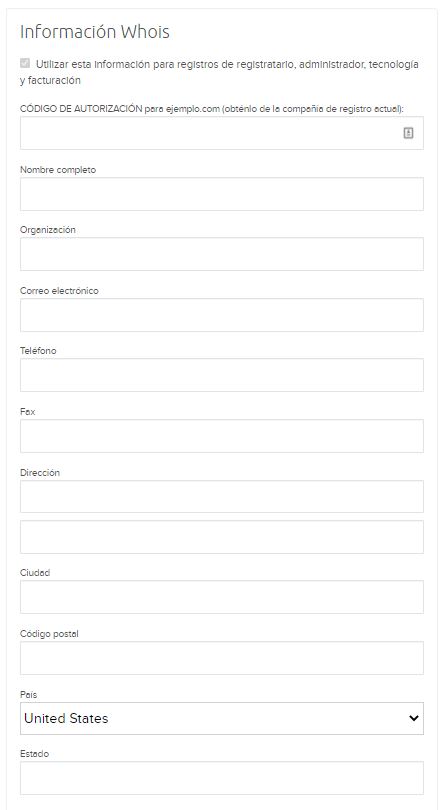 Tu compañía de registro actual debería darte un Código de Autorización o EPP. Asegúrate de llenar los campos con el código exacto que te proveen.