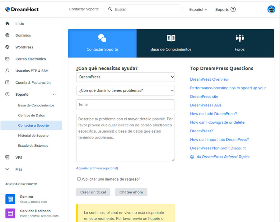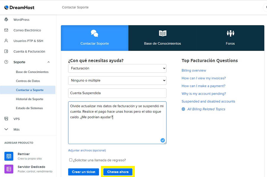 Paso 3: Contacta el soporte técnico de DreamHost
