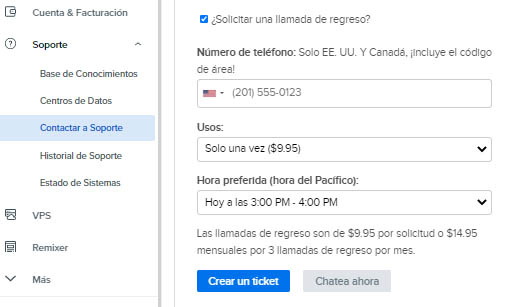 Para acceder al soporte telefónico, marca la casilla ‘Pedir una llamada de regreso’ cuando envíes un tiquete.
