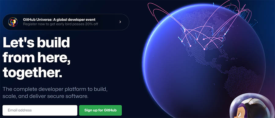 En este punto, querrás crear una cuenta de GitHub. Comienza por acceder a la página inicial de GitHub y llenar el formulario de registro: