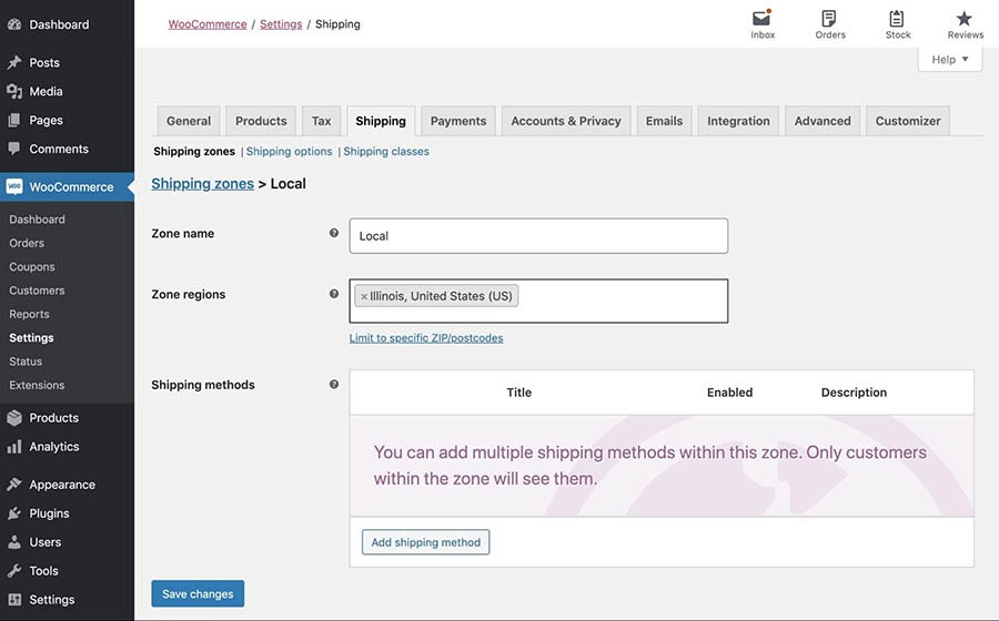 WooCommerce ya no ofrece una opción de envío de “entrega local”. Sin embargo, puedes configurar una sin la necesidad de un plugin adicional.