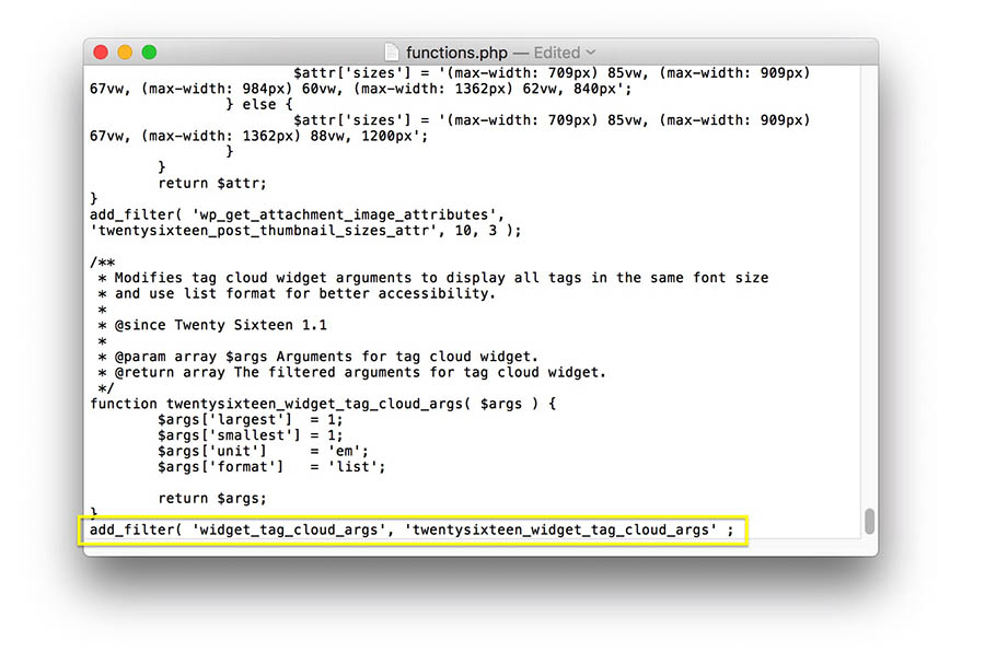 En el mensaje de Parse error, verás que te muestra, incluso, la línea de código donde está el problema. A continuación, simplemente debemos hallar esa línea y corregir el error. En nuestro ejemplo, es un paréntesis faltante, así que lo solucionaremos.