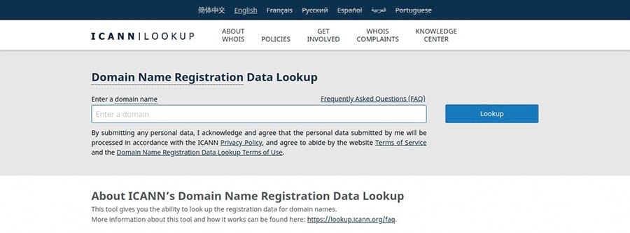 Debido al California Consumer Privacy Act y regulaciones de GDPR de la Unión Europea, no es tan fácil como solía ser buscar la información de contacto de un dueño de dominio en el directorio de WHOIS. Sin embargo, aún puedes usar el directorio para ver el nombre de la organización relacionada con el dominio.