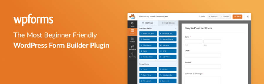 WPForms es posiblemente el plugin de formularios más popular entre los usuarios de WordPress, con más de cinco millones de instalaciones activas. Este plugin te permite acceder una gama completa de campos pre-configurados.