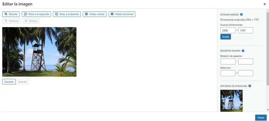 Aquí puedes actualizar el ancho y la altura con nuevos valores. Una vez guardes los cambios, las imágenes que subas se ajustarán a esas dimensiones.
