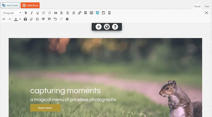 Ahora, añade contenido relevante a tu sitio profesional. Liftoff AI incluye una herramienta de creación de contenido con IA, que te permite generar textos directamente desde el editor de WordPress. También cuenta con una biblioteca de patrones para insertar secciones prediseñadas con un solo clic.