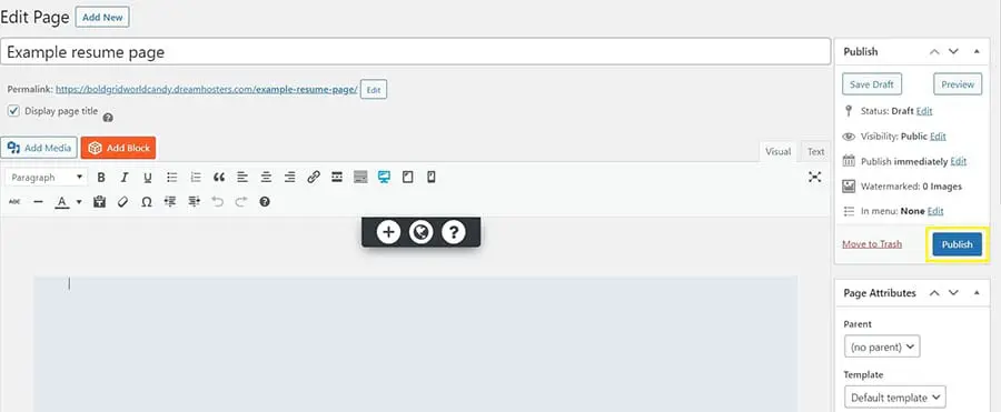Finalmente, es momento de lanzar tu sitio web. Asegúrate de estar satisfecho con el contenido de cada página y haz clic en ese brillante botón azul de Publicar.