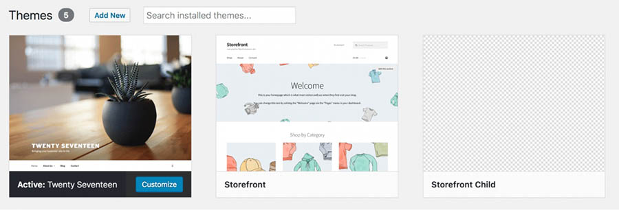 Te mostraremos cómo funciona esta proceso empezando desde cero. Sin embargo, si quieres saltarte algunos de estos pasos e ir directo a personalizar tu sitio, puedes descargar e instalar un tema child de muestra de Storefront.