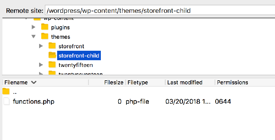 Lo primero que necesitarás es crear una carpeta que contenga tu tema. Si estás añadiendo el tema child directamente a un sitio existente, lo mejor es que lo hagas a través de SFTP. Puedes hacerlo con una aplicación gratuita como FileZilla.