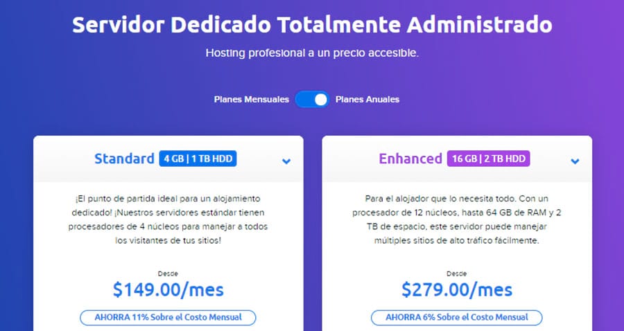 La opción de actualización más costosa, el alojamiento dedicado te da control completo sobre los recursos del servidor.
