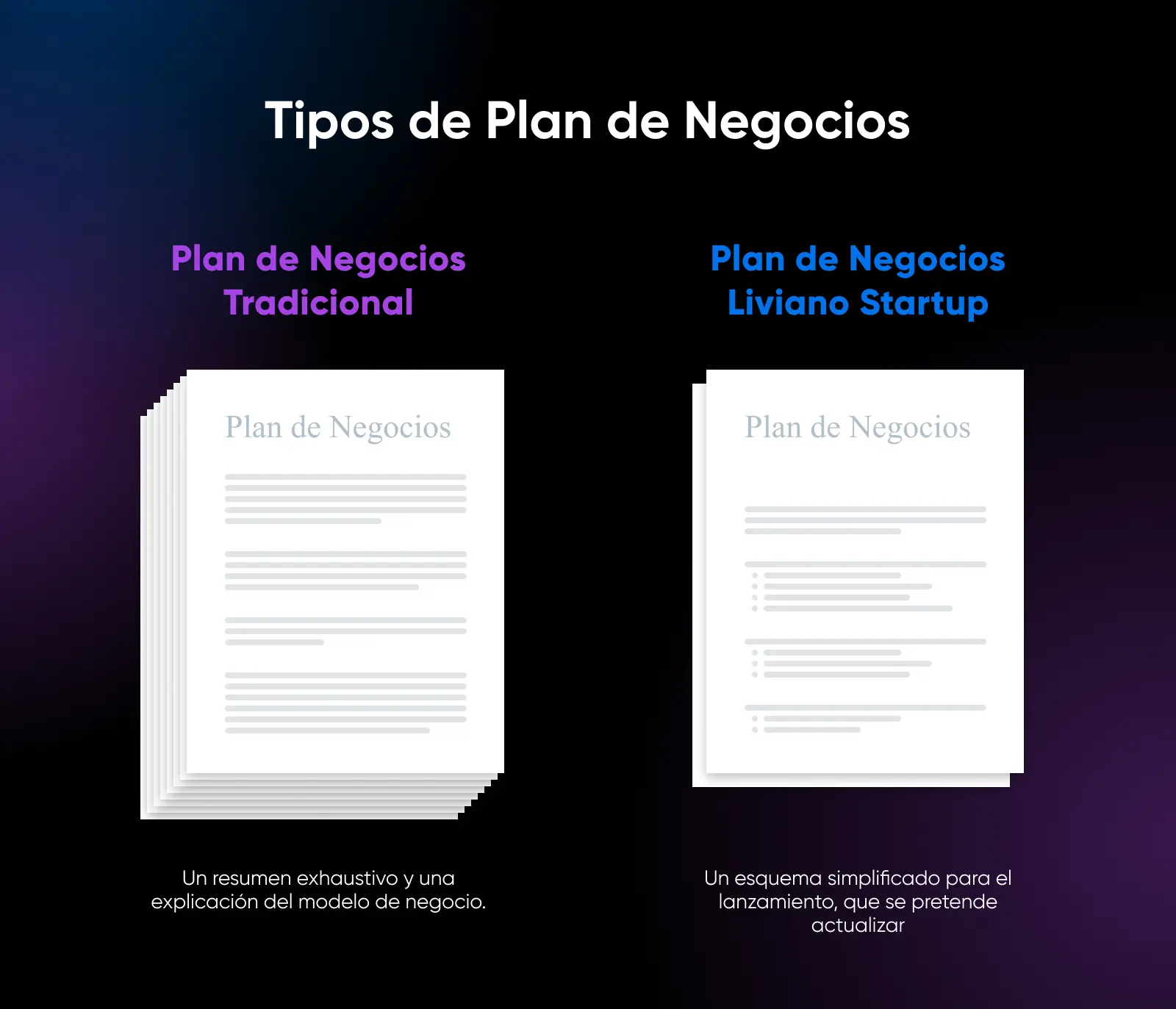 Comprender los tipos comunes de planes de negocio puede ayudarte a elegir el adecuado para las necesidades de tu empresa. Generalmente, hay dos categorías principales de planes de negocio: