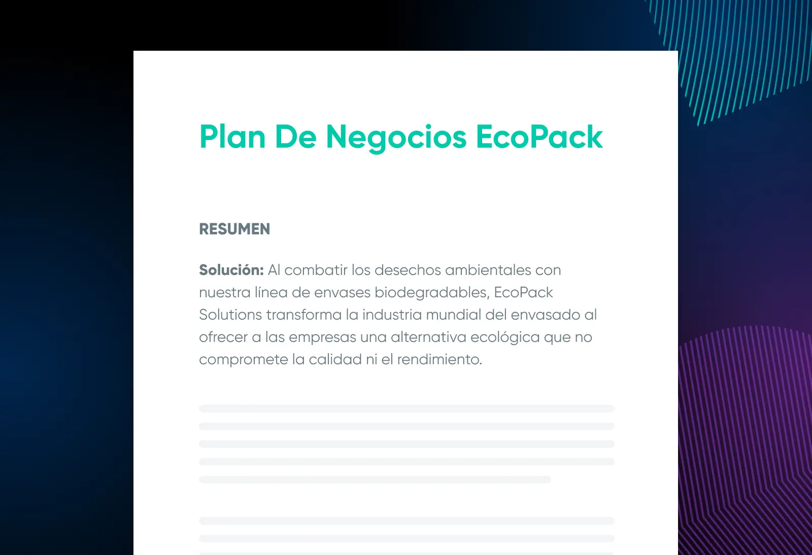 Un plan de negocios es un documento completo que describe tus objetivos empresariales y detalla las estrategias que utilizarás para alcanzar tus metas. Actúa como una hoja de ruta para tu negocio, destacando tus planes para el desarrollo de productos, marketing, operaciones y finanzas.
