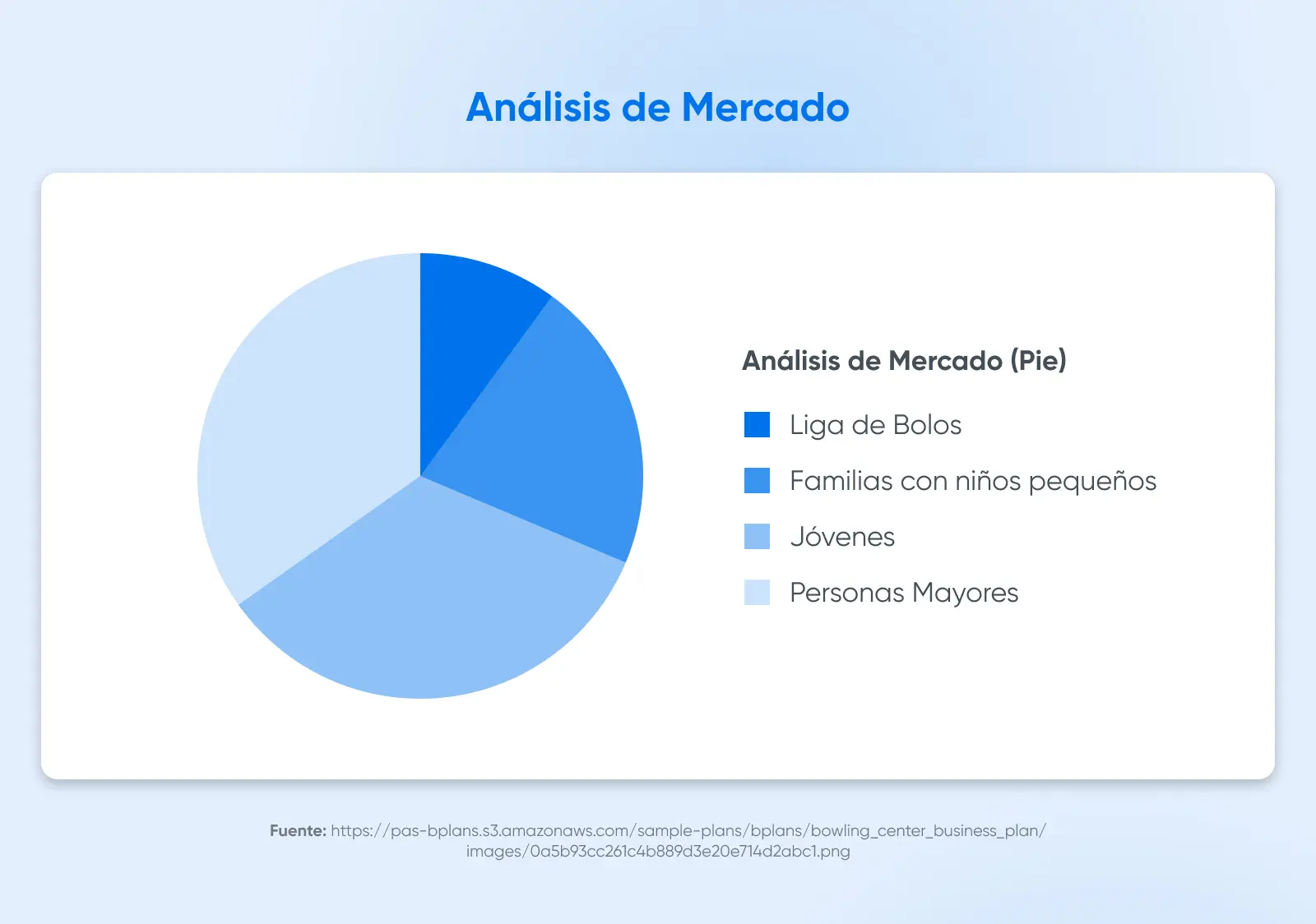 El propósito del análisis de mercado es demostrar a tus lectores, ya sean potenciales inversores, socios o incluso miembros del equipo, que has hecho tu tarea. Se trata de mostrar que tu negocio no es solo una gran idea en teoría, sino que es viable y competitivo en el mundo real. Esta sección debe responder preguntas clave sobre el tamaño de tu mercado objetivo, tendencias y potencial de crecimiento, necesidades y comportamientos del cliente, y fuerzas competitivas.