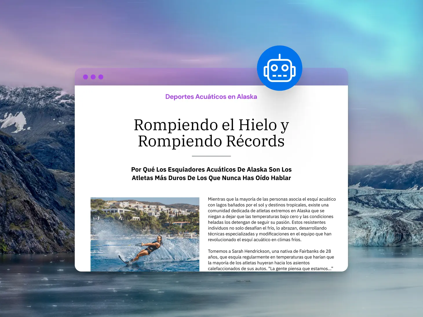 Para llegar a clientes que hablan otros idiomas, puedes aprovechar herramientas de IA para traducir contenido de alta calidad.