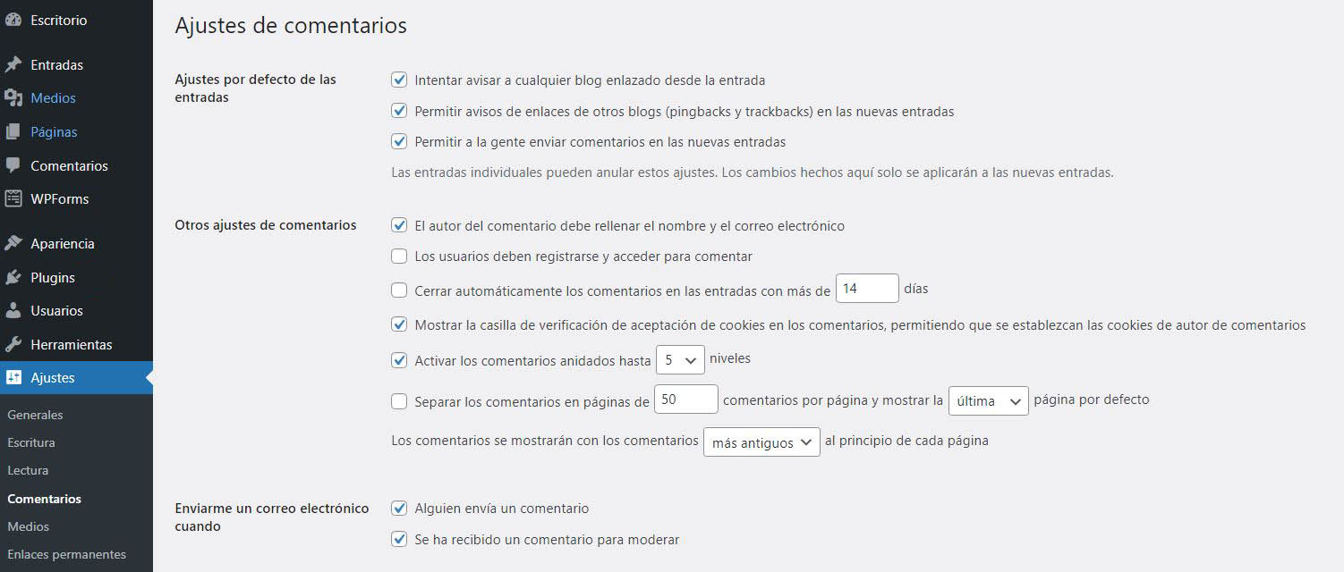Estas opciones te permiten controlar qué comentarios se publican en tu sitio. Esto puede ser útil si recibes mucho spam.