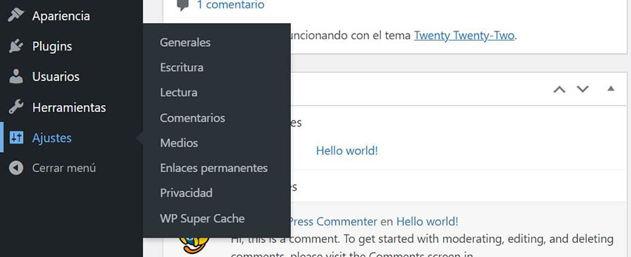 El área de “Configuración” en tu panel de WordPress es el centro donde encuentras las herramientas para definir, personalizar y controlar las diferentes secciones de tu sitio.