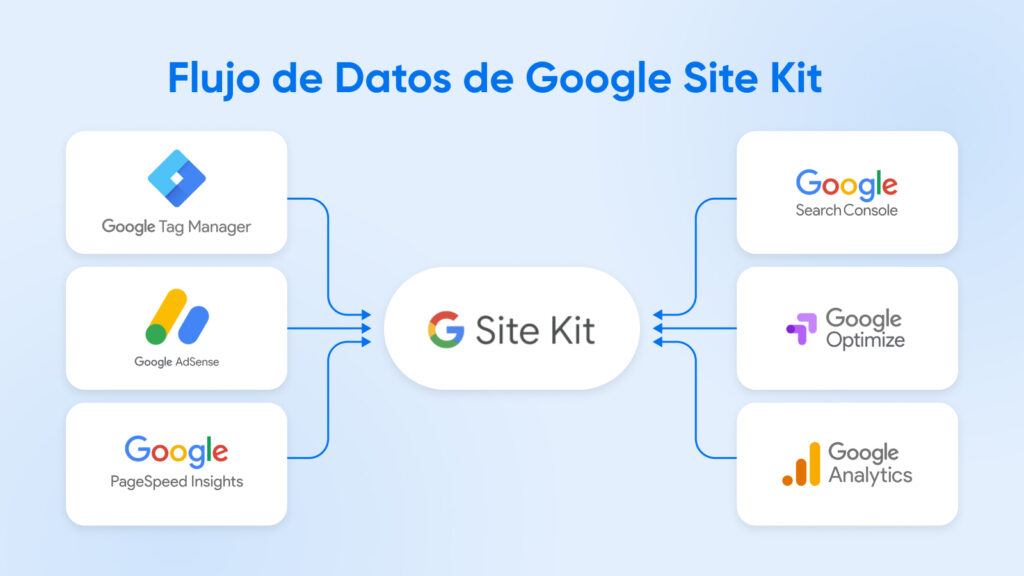Como un plugin oficial de WordPress desarrollado por Google, Site Kit conecta tu sitio web directamente con seis poderosos servicios de Google.