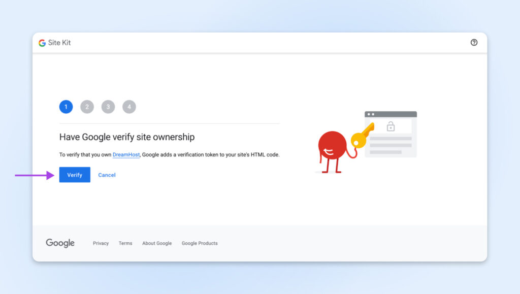 Si no es así, Site Kit te guiará a través del proceso de verificación.