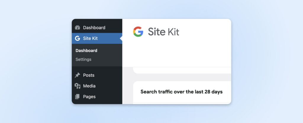 Ahora verás una nueva opción de Site Kit en tu barra lateral.