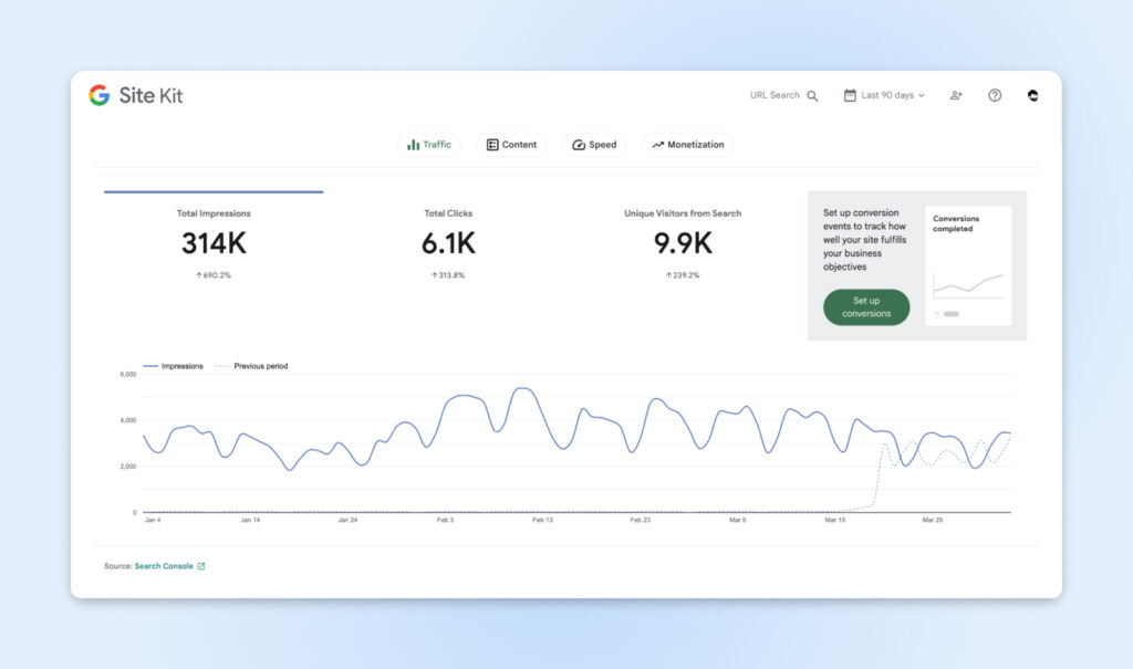 Site Kit hace que estas relaciones sean visibles de un vistazo, ayudándote a tomar decisiones informadas en lugar de depender de suposiciones.