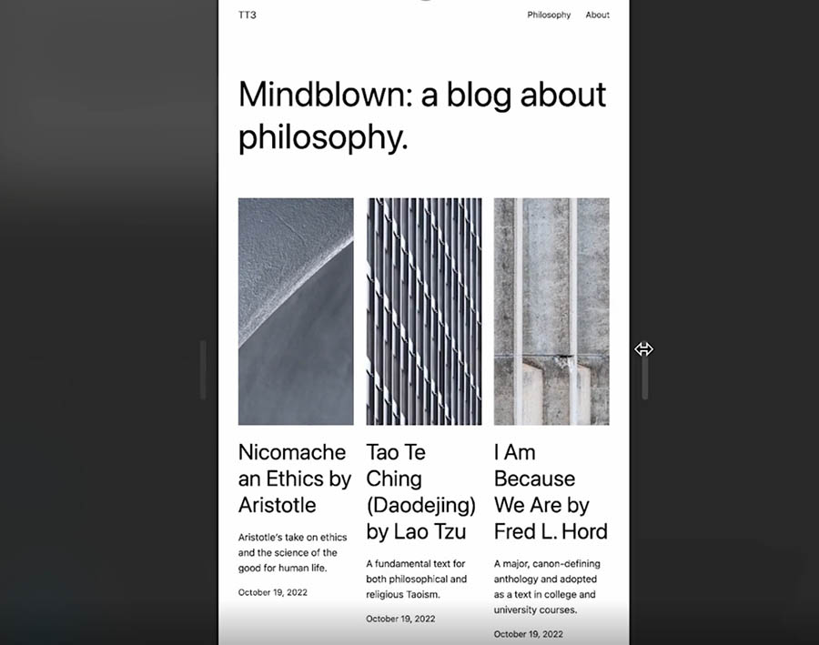Mira este ejemplo de un sitio web que emplea Twenty-Twenty Three, uno de los temas más nuevos de WordPress, en su Sistema de Gestión de Contenido (CMS). Este tema es compatible con dispositivos móviles por defecto, así que no hay excusa para que tu sitio no luzca perfecto en la mayoría de dispositivos: