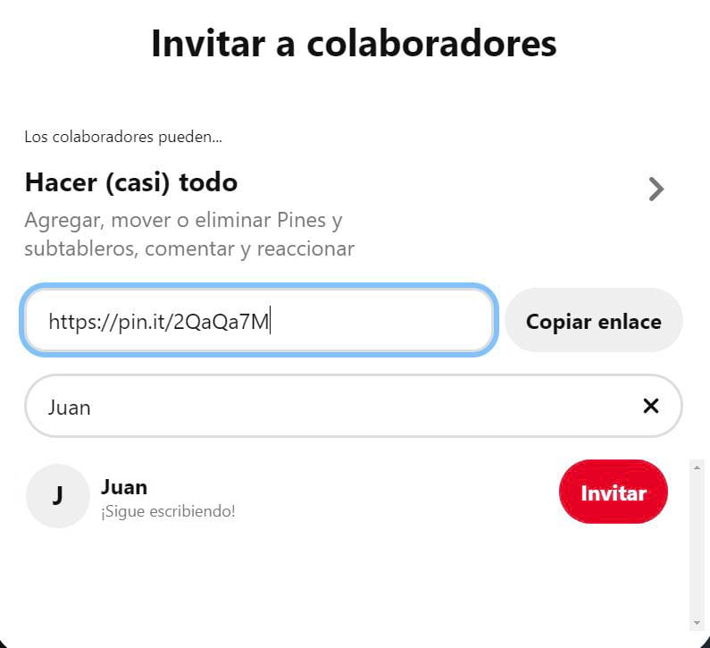 También les puedes permitir invitar a otros al tablero.