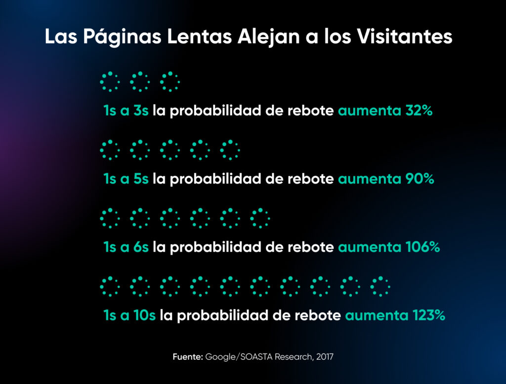 La velocidad de tu sitio web hace más que solo satisfacer a los impacientes: ¡puede literalmente determinar el éxito o fracaso de las ventas! Las investigaciones muestran que muchos visitantes abandonan si tarda más de tres segundos en cargar. Para una pequeña empresa, cada visitante perdido puede significar ingresos perdidos y un posible golpe a tu reputación.