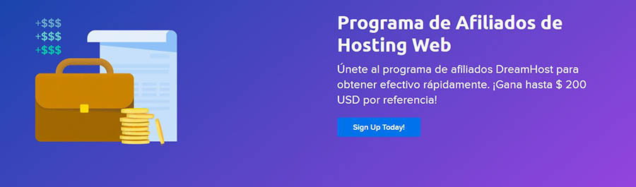 Únete al Programa de Afiliados de DreamHost y gana dinero rápidamente. ¡Gana hasta $200 USD por cada recomendación!