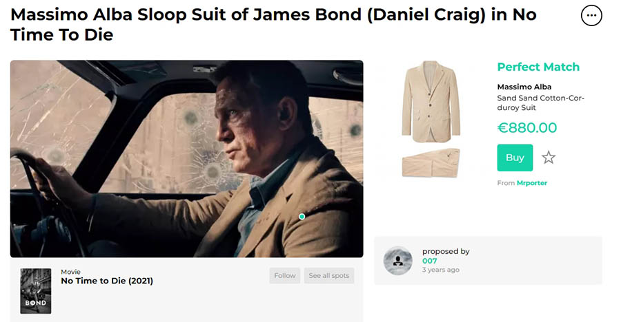 Por ejemplo, en Spotern la gente puede identificar y comprar ropa que salió en películas. Los enlaces para comprar están identificados con botones, que además mencionan a las tiendas que albergan a esas prendas; tiendas, a las que llegarán los compradores tras hacer sus clics.