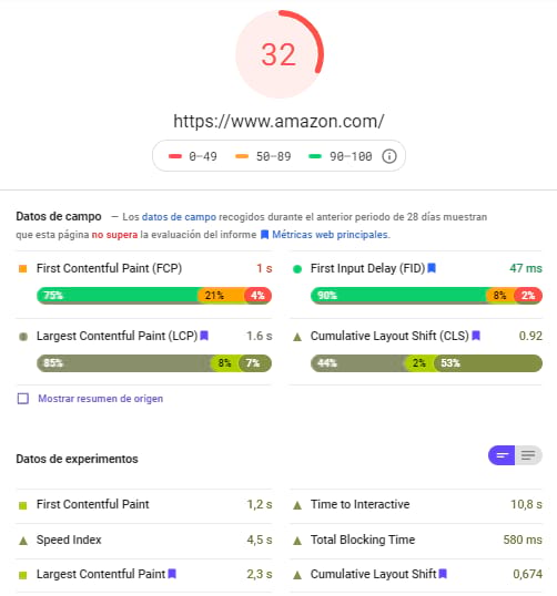 Así se ven los tiempos de carga de Amazon