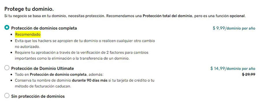 Las letras que aparecen después del punto se conocen como dominio de nivel superior o TLD. Las opciones más comunes son: