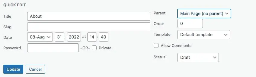 Una vez que haces clic en ‘Actualizar’, todas tus configuraciones serán guardadas. Querrás hacer esto para cada una de las páginas en tu sitio. Si añades nuevas páginas más adelante, puedes seguir los mismos pasos para organizarlas en tu jerarquía existente.