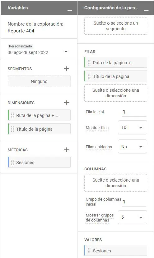 Google Analytics es grandioso para desenterrar errores 404. En el panel de GA dirígete a la sección ‘Explorar’ y elige ‘Blanco’: