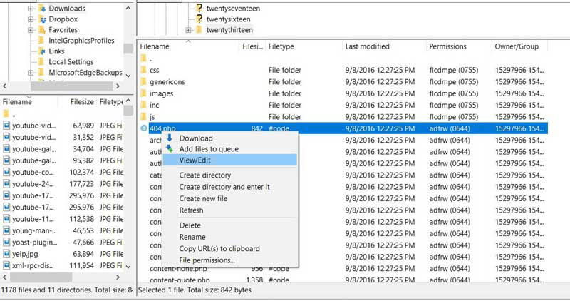 A continuación, haz clic derecho en el archivo 404.php y selecciona la opción View/Edit.