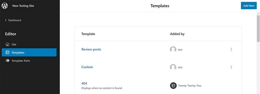 Ten en cuenta que si estás usando un tema de bloques de WordPress, puedes editar su página 404 al navegar a ‘Apariencia > Editor > Plantillas’.