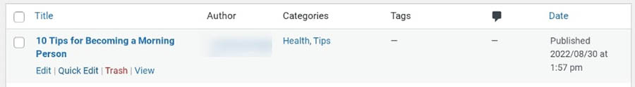 Puedes editar la publicación, verla o enviarla a la papelera para eliminarla. También puedes elegir la opción ‘Edición Rápida’, la cual te permite hacer algunos cambios básicos sin llevarte al editor completo de publicaciones.