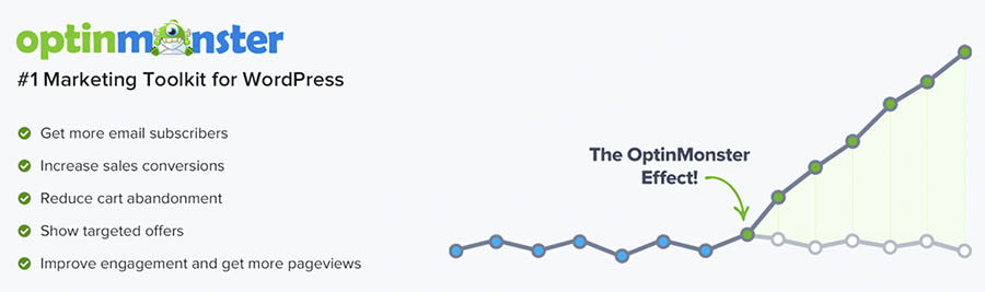 OptinMonster es un complemento para crear pop-ups que te permite atraer más suscriptores y hacer crecer tu negocio. Existen varios complementos que proporcionan esta funcionalidad. Sin embargo, nos gusta OptinMonster porque destaca en volver a involucrar a los visitantes que están a punto de abandonar tu sitio web.