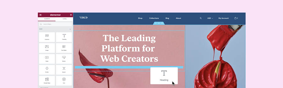 Además, la mayoría de los constructores de páginas, como Elementor, te permiten arrastrar y soltar elementos en su lugar para crear páginas visualmente.