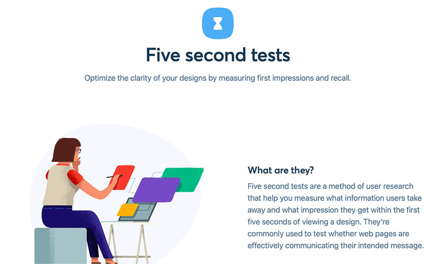 Five Second Test te permite acceder y comprender la primera impresión de un usuario sobre tu sitio web. Es un concepto único, que depende de evaluadores que tienen cinco segundos para ver tu página antes de ser cuestionados con una serie de preguntas.