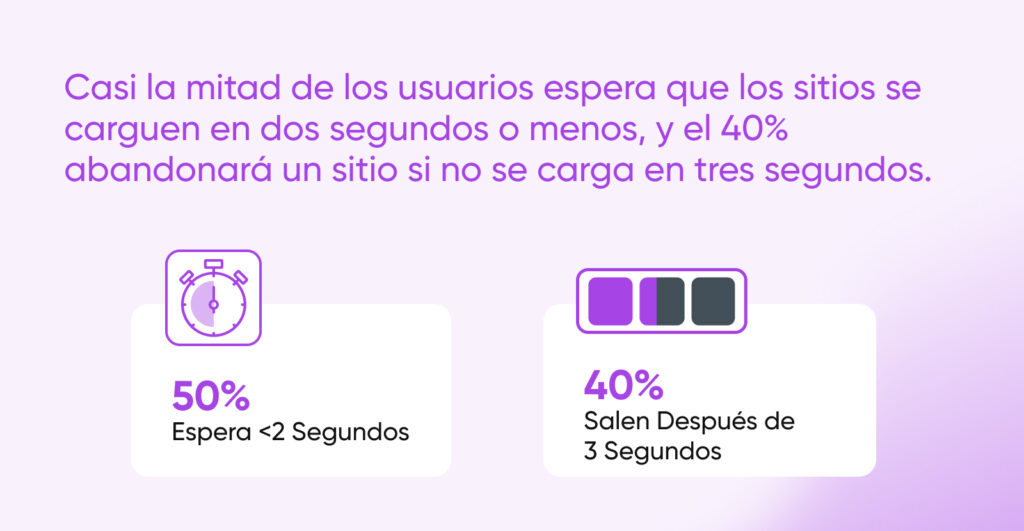 Hemos analizado el rendimiento antes, pero este también es un factor importante en la experiencia del usuario. Los visitantes tienen muchas más probabilidades de salir de tu sitio si la carga es lenta, lo que puede afectar tus objetivos comerciales. La investigación muestra que los sitios de comercio electrónico que se cargan en un segundo tienen una tasa de conversión 2.5 veces más alta que los sitios que se cargan en cinco segundos.
