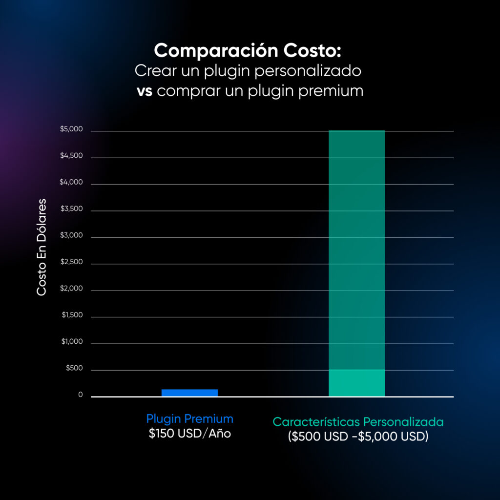 Una funcionalidad adicional puede costar hasta $5.000 USD para construir. Entonces, incluso pagar $150 USD anuales por un plugin premium parece ser una muy buena relación calidad-precio.