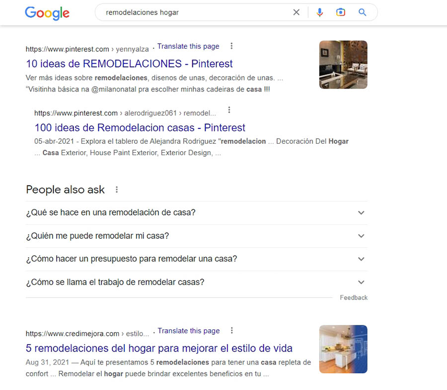- Preguntas frecuentes: En algún lugar de los resultados de búsqueda, deberías encontrar una lista de preguntas frecuentes relacionadas con tu búsqueda.