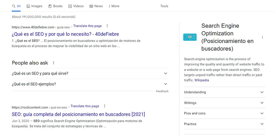 Esto es de lo que se trata la Optimización para Motores de Búsqueda (SEO).