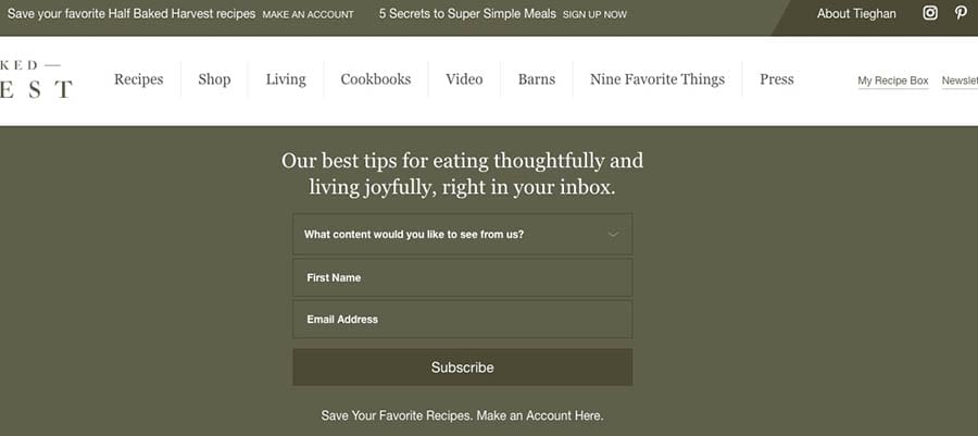 Donde sea que los pongas, asegúrate de que tus CTAs sean prominentes e incluye algo para provocar la curiosidad e interés de tu audiencia (como una declaración sobre los beneficios que recibirán al suscribirse).