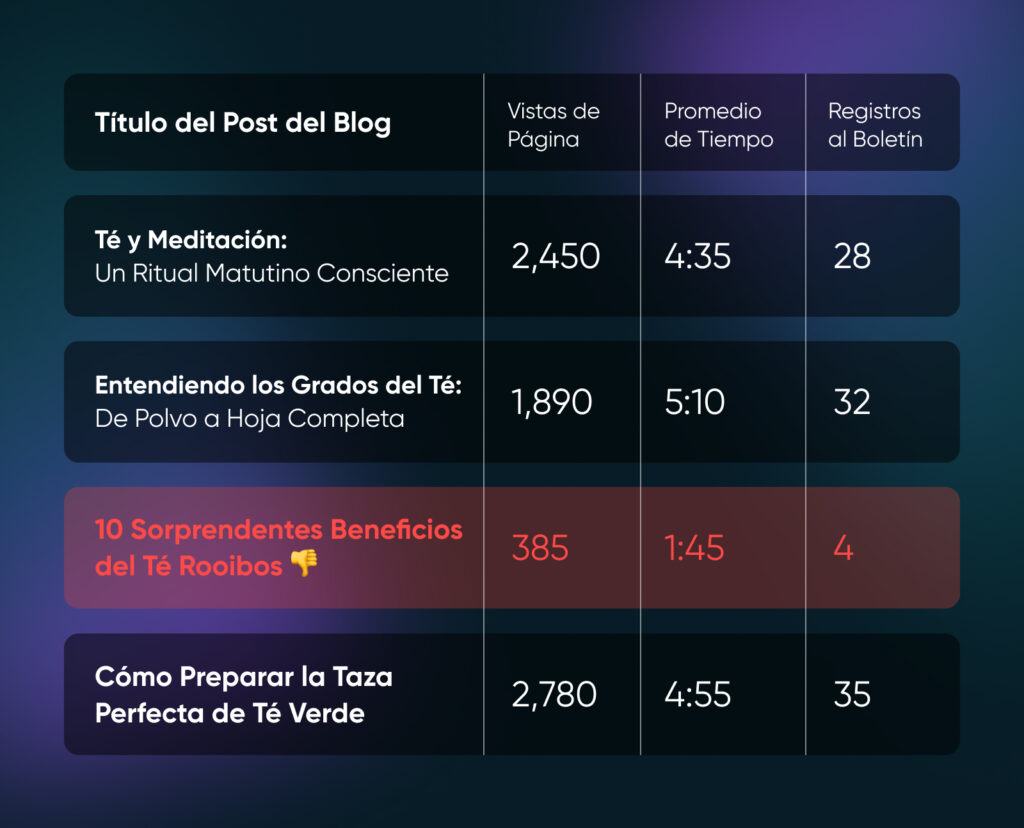 El tráfico solo cuenta una parte de la historia. También necesitas observar las métricas de interacción. Estas te dirán si tu contenido resuena con los lectores.