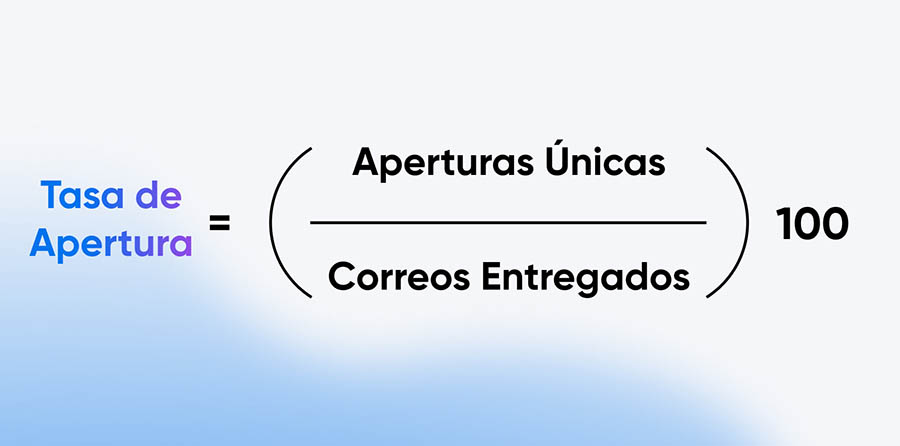 Tasa de apertura de correos = (Aperturas únicas ÷ Correos entregados) x 100