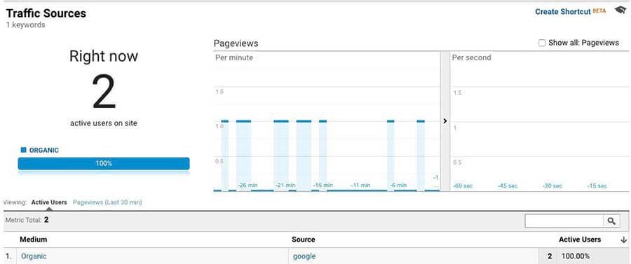 El tráfico de búsqueda orgánica, incluye visitantes que lleguen a tu sitio web gracias a motores de búsqueda en vez de otros canales, tales como los medios de comunicación o las redes sociales, publicidad pagada o backlinks. La forma más fácil de rastrear este tipo de tráfico es con Google Analytics.