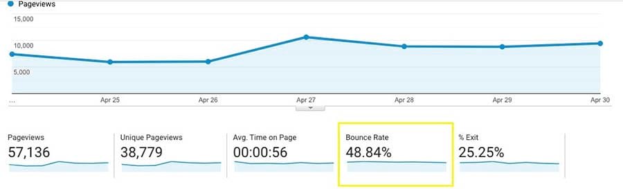 También, puedes observar esta métrica en conjunto con cuanto tiempo pasan los usuarios en tus páginas. Esto te provee un vistazo invaluable en el rendimiento de tu contenido. ¿Las personas están moviéndose entre página y página demasiado rápido? o ¿Están gastando el tiempo necesario cada nueva pieza de contenido?
