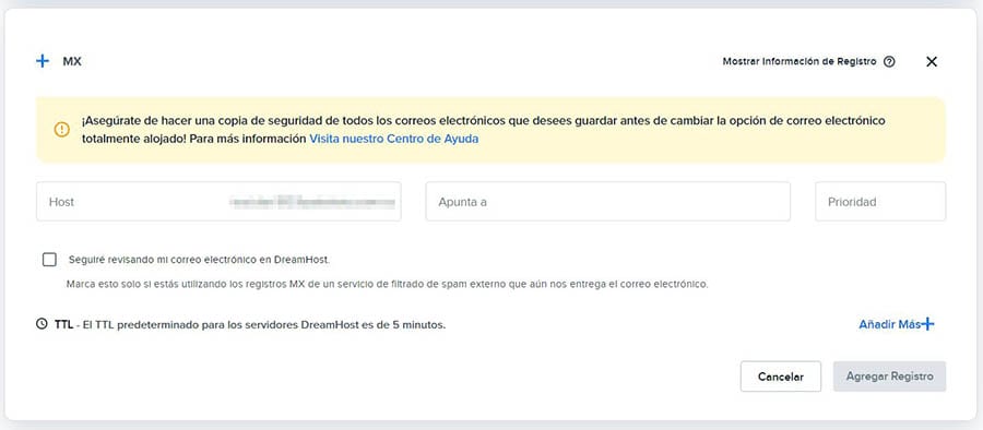 Es importante asegurarte de que tus registros MX apuntan al servidor de correo correcto. De lo contrario, los correos no serán entregados a tu cuenta. También recomendamos que realices copias de seguridad de tus correos antes de cambiarte a una compañía diferente de alojamiento.