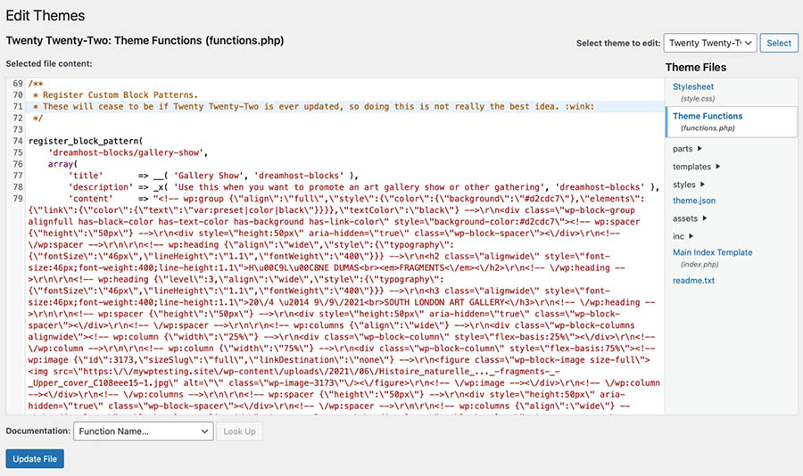 - WordPress 6.0 hizo que el inserto de bloques fuera más fácil de navegar y facilitó a los desarrolladores agregar patrones a sus temas.